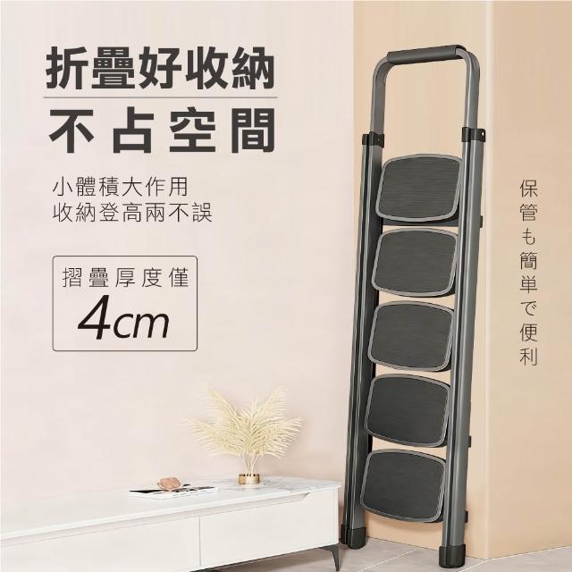ANDYMAY2穩步安全扶手折疊人字梯-四階/五階(規格任選)(折疊梯子 家用梯 A字梯 五層梯 梯子 工作梯 交換禮物)