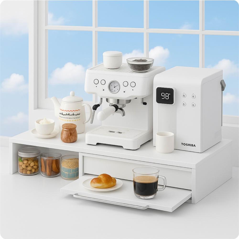 ANDYMAY2摩卡抽屜式咖啡收納架 -可延伸作業空間 46CM-款式任選(抽屜電器架 咖啡機架 雙層工作台 廚房架)
