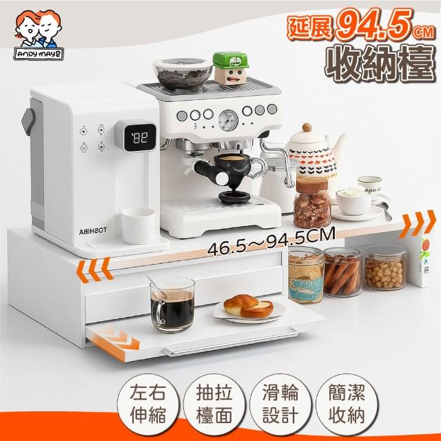 ANDYMAY2摩卡抽屜式咖啡收納架 -可延伸作業空間 46CM-款式任選(抽屜電器架 咖啡機架 雙層工作台 廚房架)