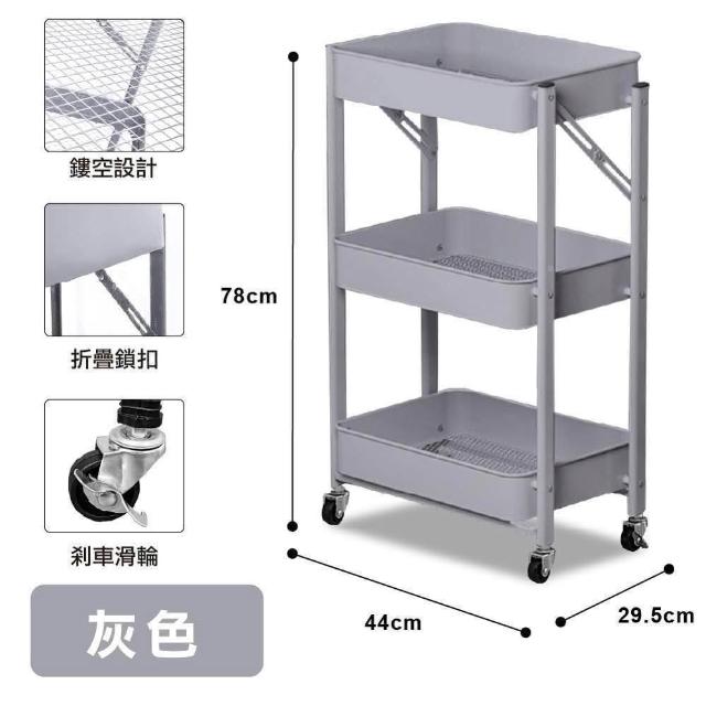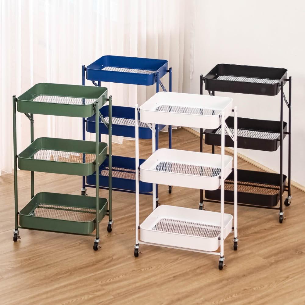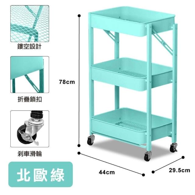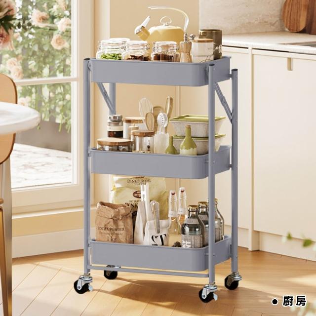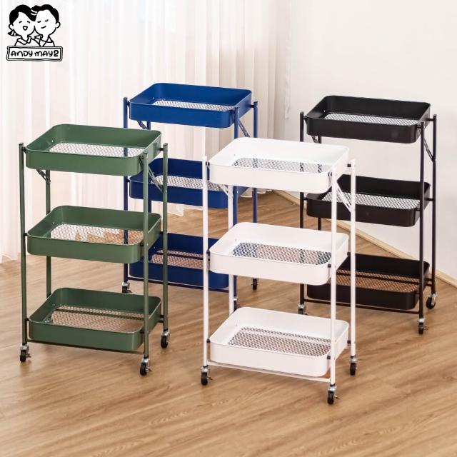 ANDYMAY2免安裝折疊收納推車(置物架 層架 折疊推車 化妝品收納 手推車 三層推車 推車 收納推車 收納車 交換禮物)