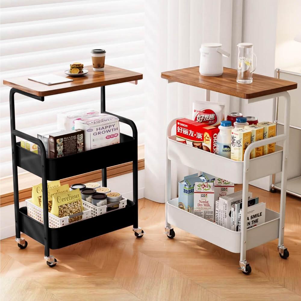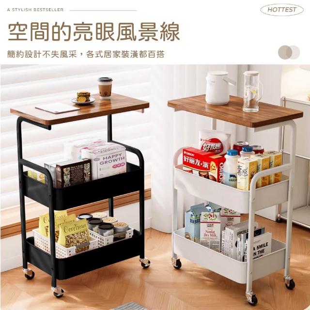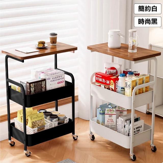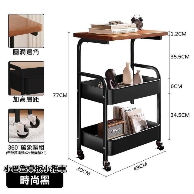 ANDYMAY2小巴登木桌板鐵製收納推車-2色任選(收納架 置物櫃 手推車 交換禮物)