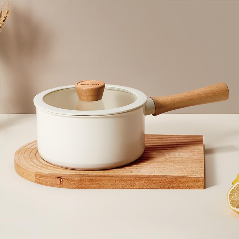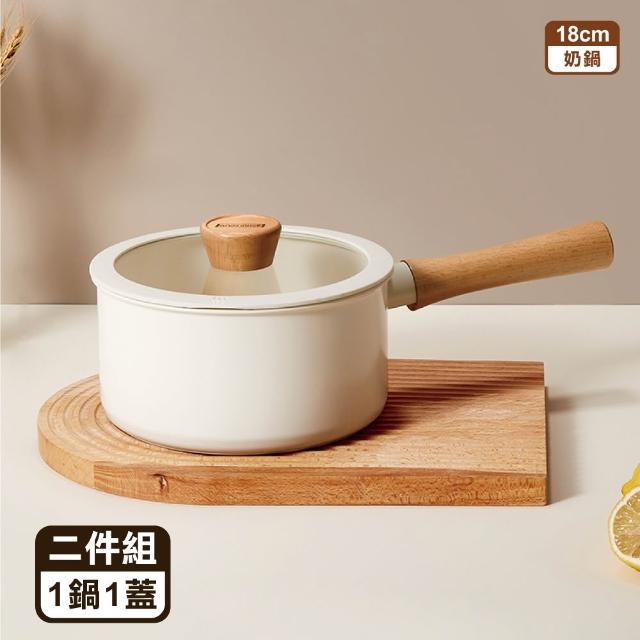 ANDYMAY2日式櫸木柄陶瓷不沾鍋_18CM奶鍋+上蓋(泡麵鍋 不沾鍋 平底鍋 不沾鍋炒鍋 平底鍋 炒鍋 炒菜鍋 不沾湯鍋 櫸木手柄鍋)