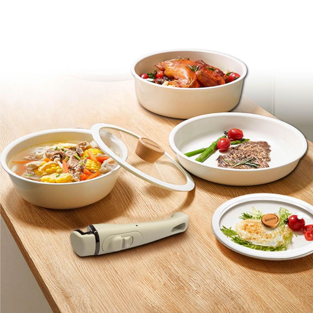 ANDYMAY2韓式陶瓷塗層可拆不沾鍋-6件組24CM蓋(20湯鍋+24煎鍋+26炒鍋+20鍋蓋+可拆手把)(泡麵鍋 鍋子 鍋具)