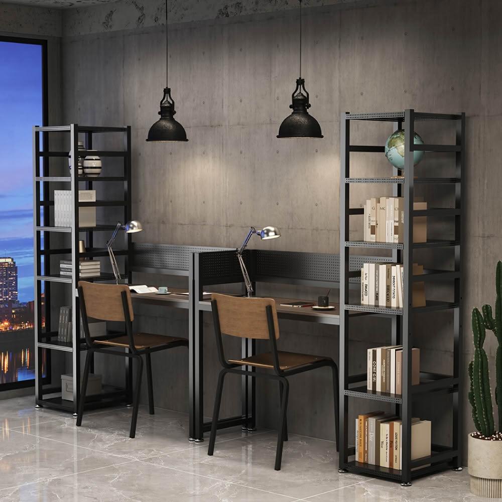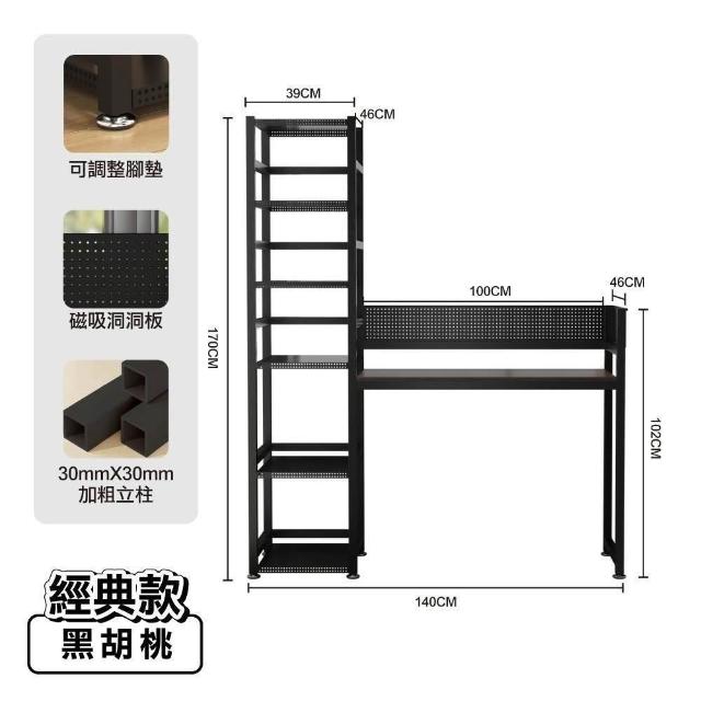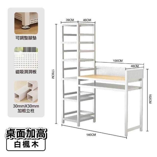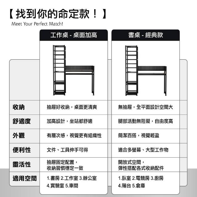 ANDYMAY2阿姆斯升級全碳鋼收納層架工作桌/書桌140 x 46 x 170CM(一體式高機能桌架組 書架 辦公桌)