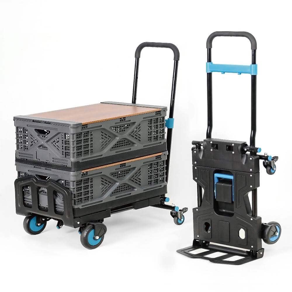 ANDYMAY2優奈變形二合一折疊平板手推車-煞車款+贈桌板收納箱(折疊推車 收納車 手推車 購物車 手拉車 烏龜車 搬運車 平板推車)