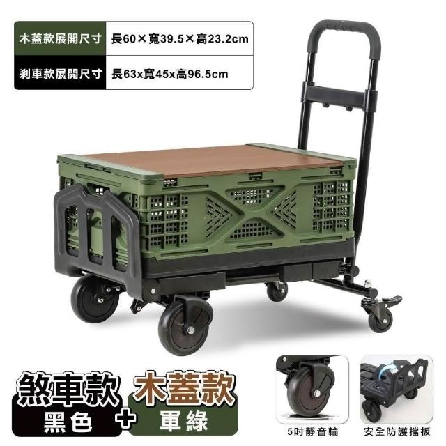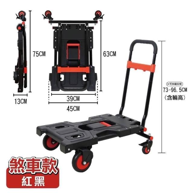 ANDYMAY2優奈變形二合一折疊平板手推車-煞車款+贈桌板收納箱(折疊推車 收納車 手推車 購物車 手拉車 烏龜車 搬運車 平板推車)
