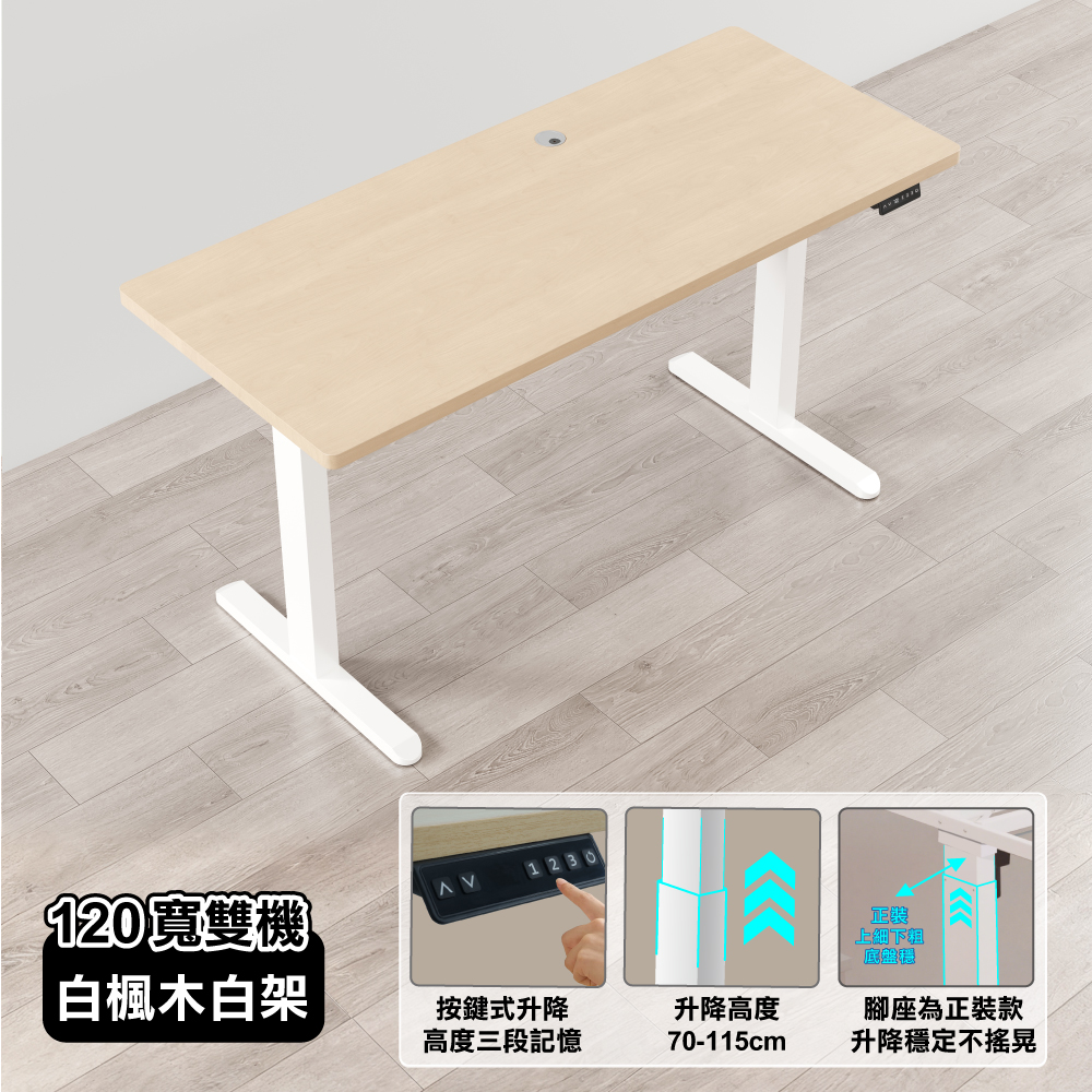 ANDYMAY2阿姆斯無段式電動升降桌 120x60CM|正裝雙機馬達 靜音操控 高承重(書桌 辦公桌 工作桌)