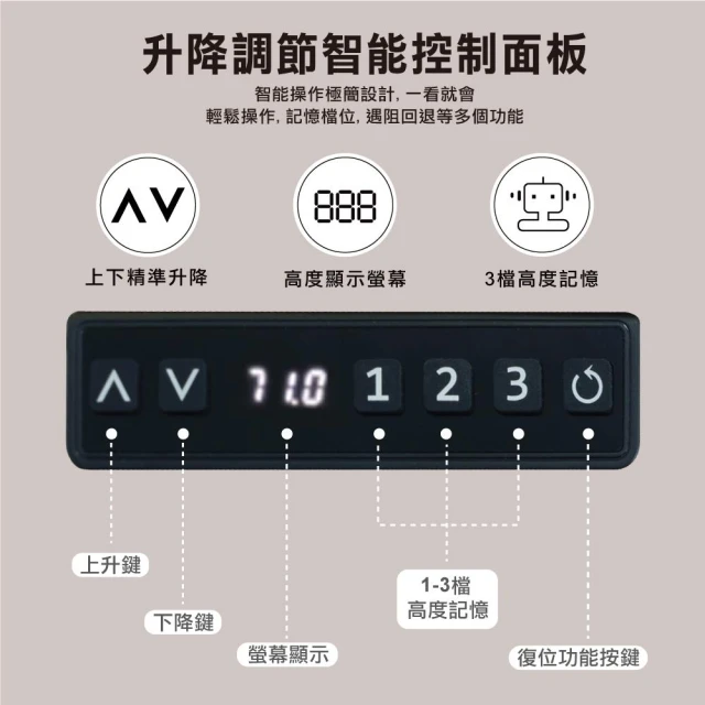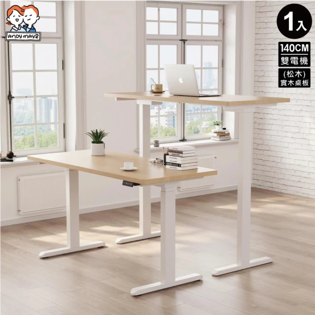 ANDYMAY2阿姆斯無段式電動升降桌 140x60CM|正裝雙機馬達 靜音操控 高承重(書桌 辦公桌 工作桌)