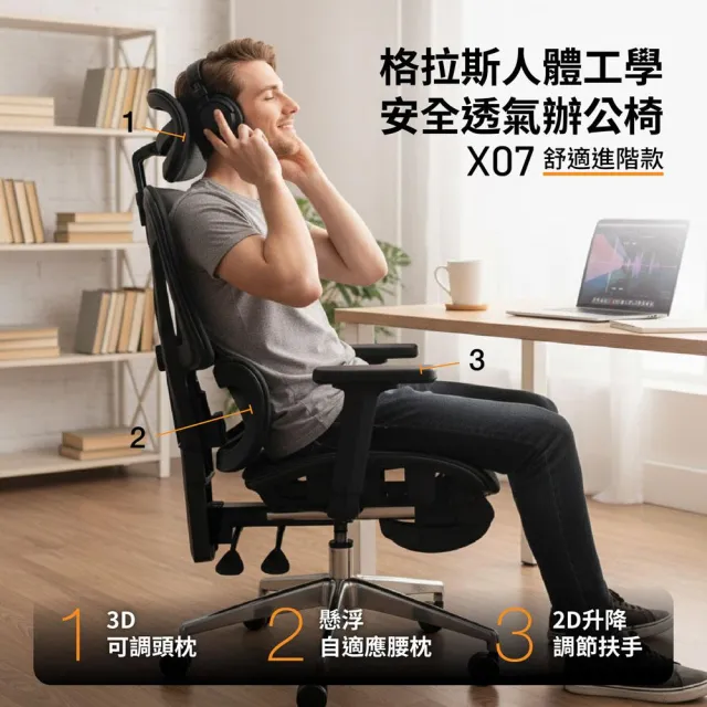 ANDYMAY2格拉斯人體工學安全護腰透氣辦公椅-X07舒適進階款(電腦椅 辦公椅 椅子)