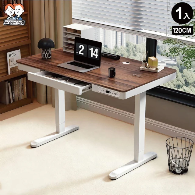 ANDYMAY2阿姆斯無段式電動升降桌-單機抽屜款 120x60CM|靜音操控 高承重(書桌 辦公桌 工作桌)
