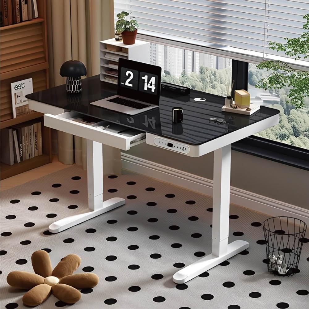 ANDYMAY2阿姆斯無段式電動升降桌-單機抽屜款 140x60CM|靜音操控 高承重(書桌 辦公桌 工作桌)