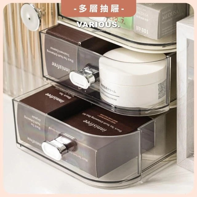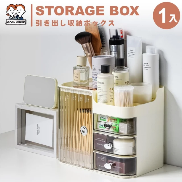 ANDYMAY2蘿拉分隔附鏡抽屜收納盒 ※ 超取限1入 ※(收納盒 化妝盒 桌上收納 化妝品收納盒 置物盒 收納袋 收納架)