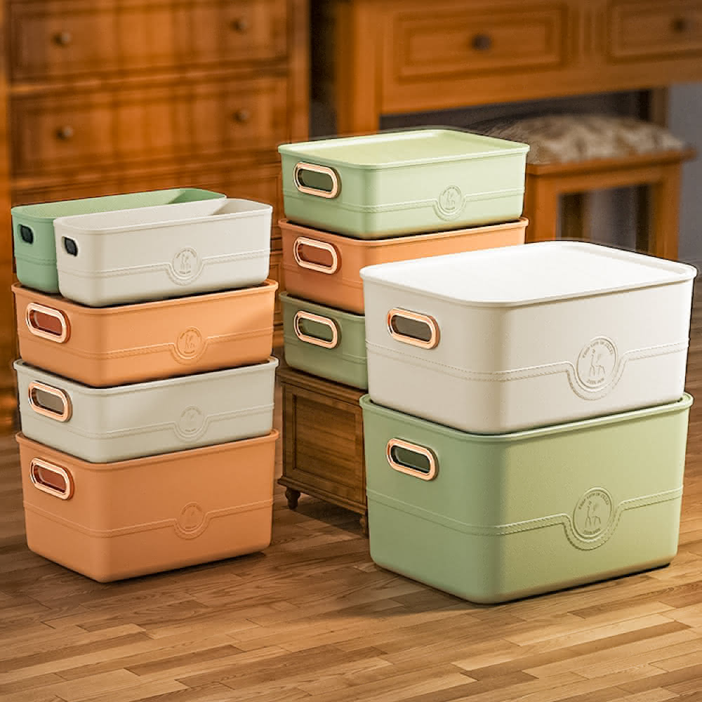 ANDYMAY22L+5L+7L+12L 卡洛皮革紋可堆疊收納盒(四件套)收納盒 收納箱 廚房收納 置物籃 置物箱 置物盒 衣物收納 整理箱 玩具箱