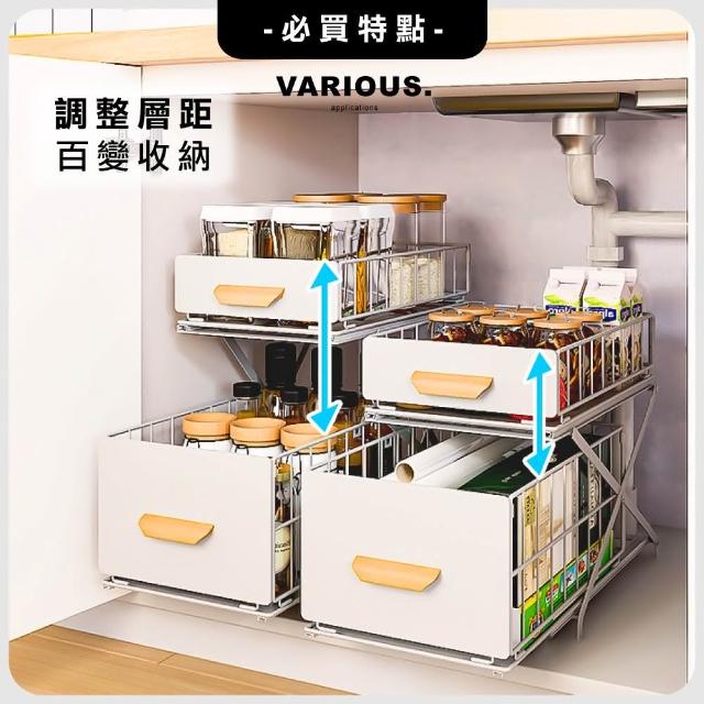 ANDYMAY2原田系抽屜三段式調整置物架-雙層40CM(收納架 分層收納 收納籃 抽取式收納 收納箱 廚房收納 交換禮物)