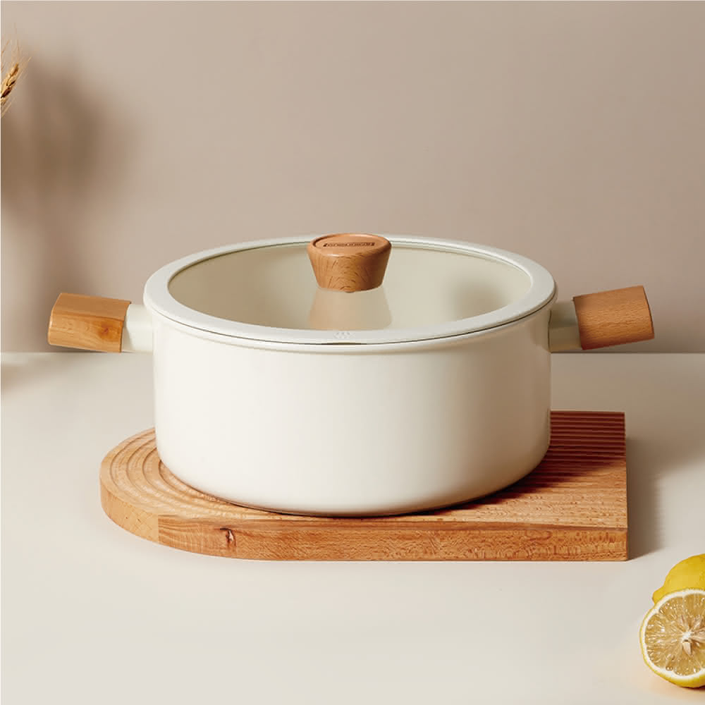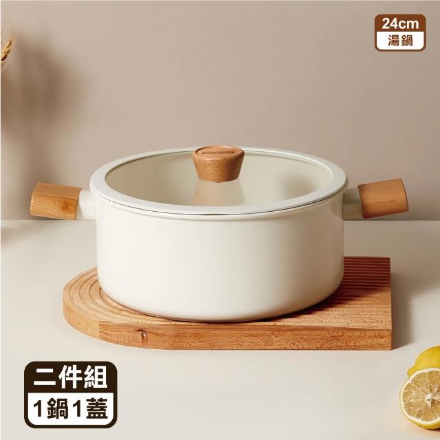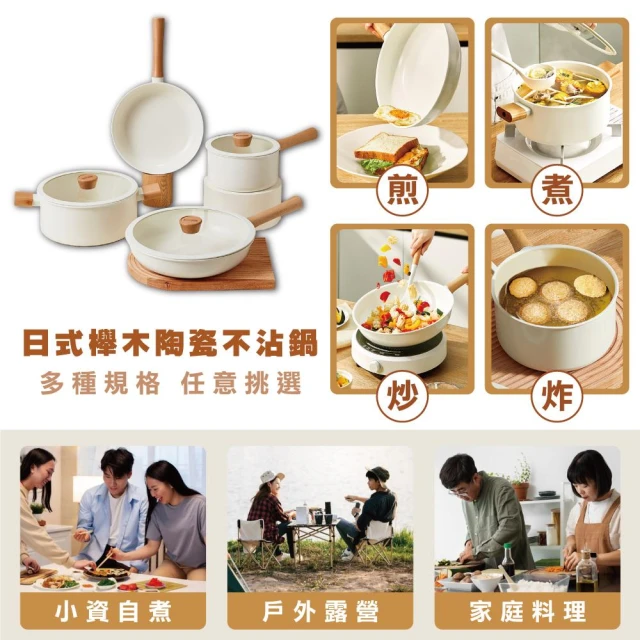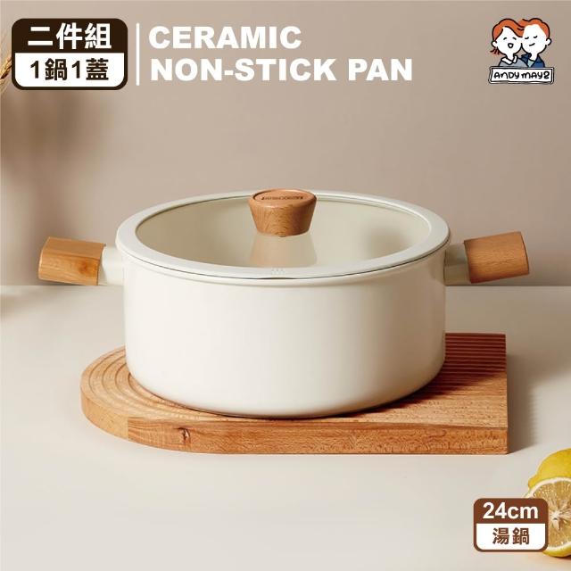 ANDYMAY2日式櫸木柄陶瓷不沾鍋_24CM湯鍋+上蓋(泡麵鍋 不沾鍋 平底鍋 不沾鍋炒鍋 平底鍋 炒鍋 炒菜鍋 不沾湯鍋 櫸木手柄鍋)