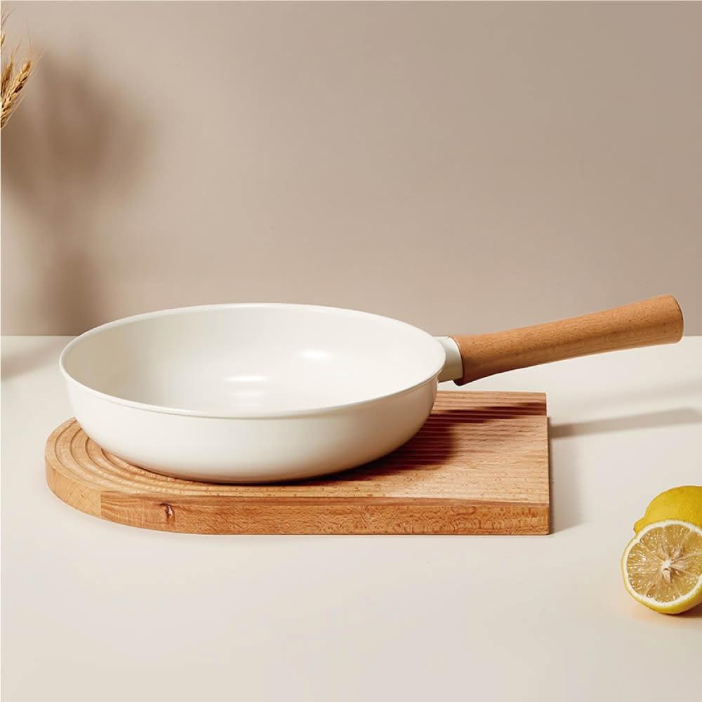 ANDYMAY2日式櫸木柄陶瓷不沾鍋_24CM煎鍋(泡麵鍋 不沾鍋 平底鍋 不沾鍋炒鍋 平底鍋 炒鍋 炒菜鍋 不沾湯鍋 櫸木手柄鍋)
