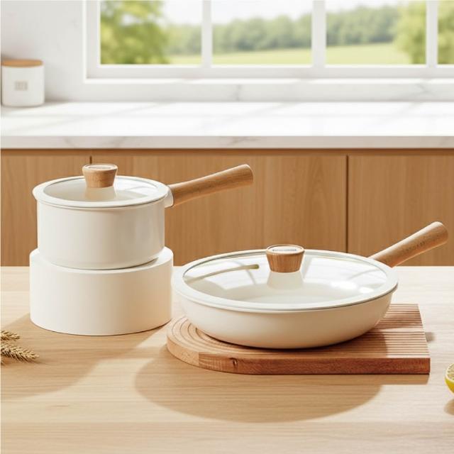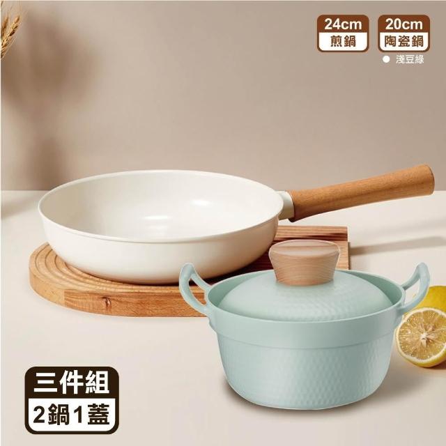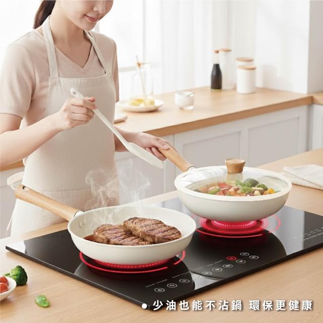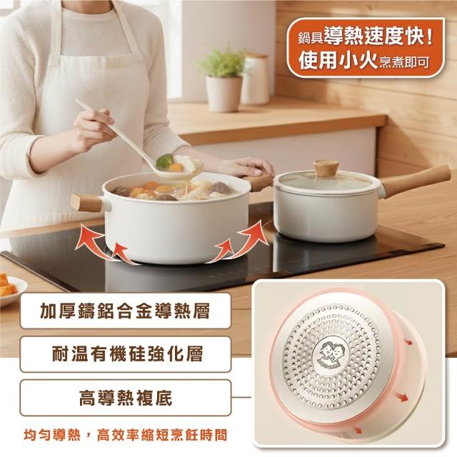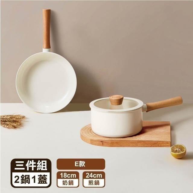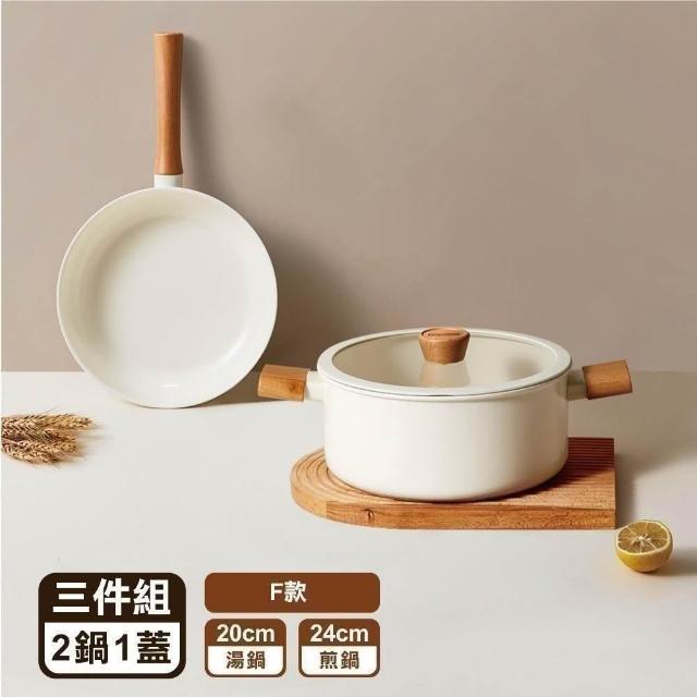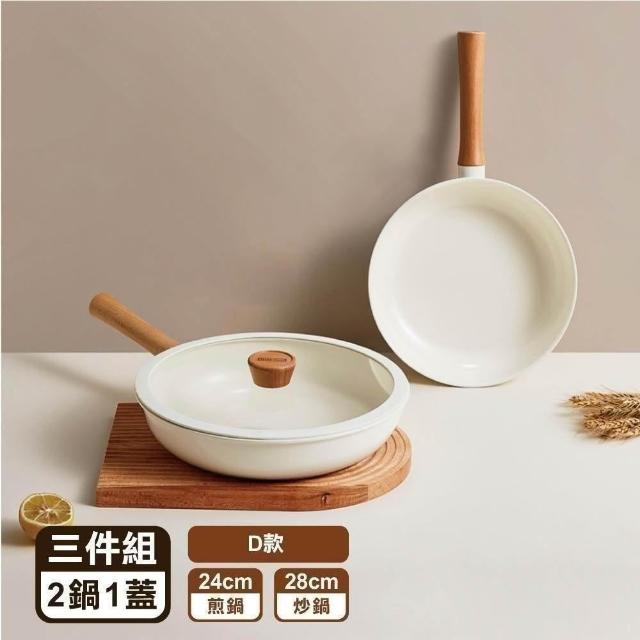 ANDYMAY2日式櫸木柄陶瓷不沾鍋-雙鍋組(規格任選)(鍋具 炒鍋 湯鍋 交換禮物)