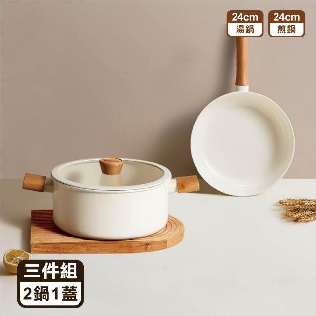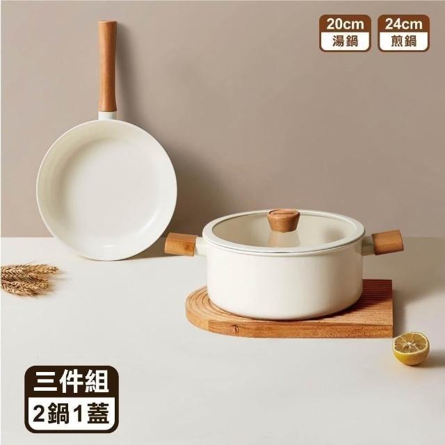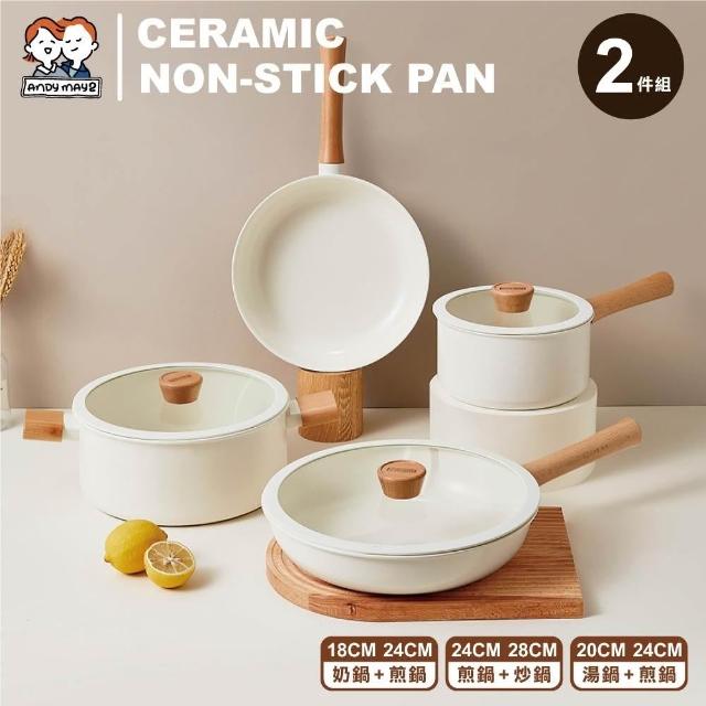 ANDYMAY2日式櫸木柄陶瓷不沾鍋-升級雙鍋組(規格任選)(泡麵鍋 不沾鍋 平底鍋 炒鍋 炒菜鍋 不沾湯鍋 櫸木手柄鍋)