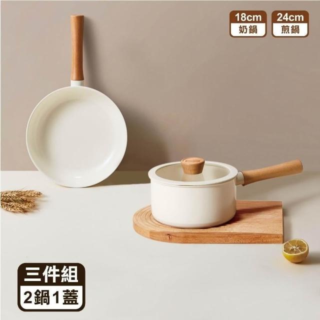 ANDYMAY2生活2件組-日式櫸木柄陶瓷不沾鍋(規格任選)(泡麵鍋 不沾鍋 平底鍋 炒鍋 炒菜鍋 不沾湯鍋 櫸木手柄鍋)