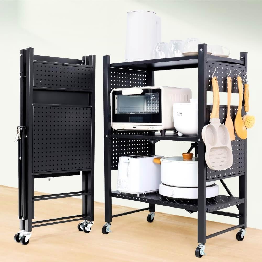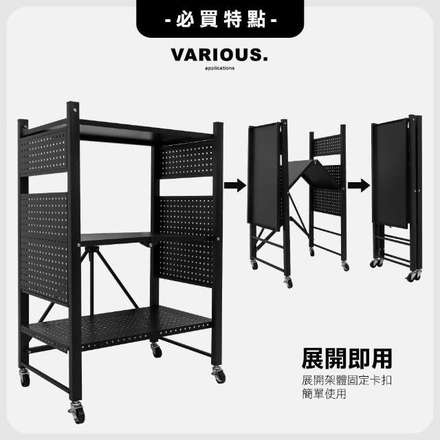 ANDYMAY2三層60寬_ 升級全碳鋼 小洛克免組裝折疊置物架-洞洞板收納(鐵架 收納架 收納櫃 廚房架 層架)