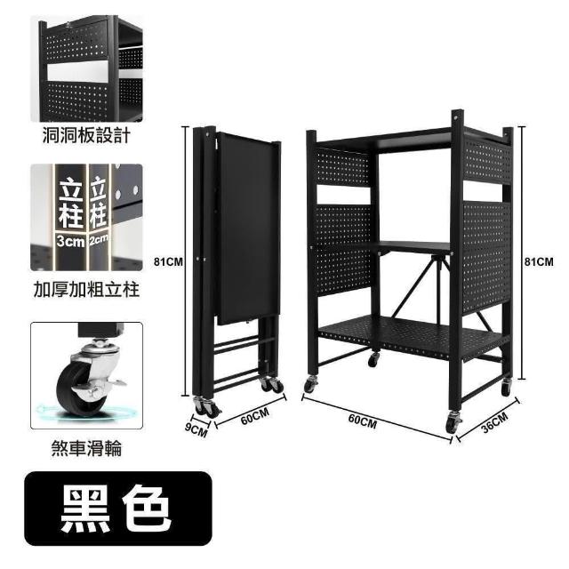 ANDYMAY2三層60寬_ 升級全碳鋼 小洛克免組裝折疊置物架-洞洞板收納(鐵架 收納架 收納櫃 廚房架 層架)
