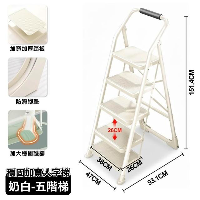 ANDYMAY2穩固加寬安全折疊人字梯-三階/四階/五階(規格任選)(折疊梯子 家用梯 A字梯 五層梯 梯子 工作梯 交換禮物)