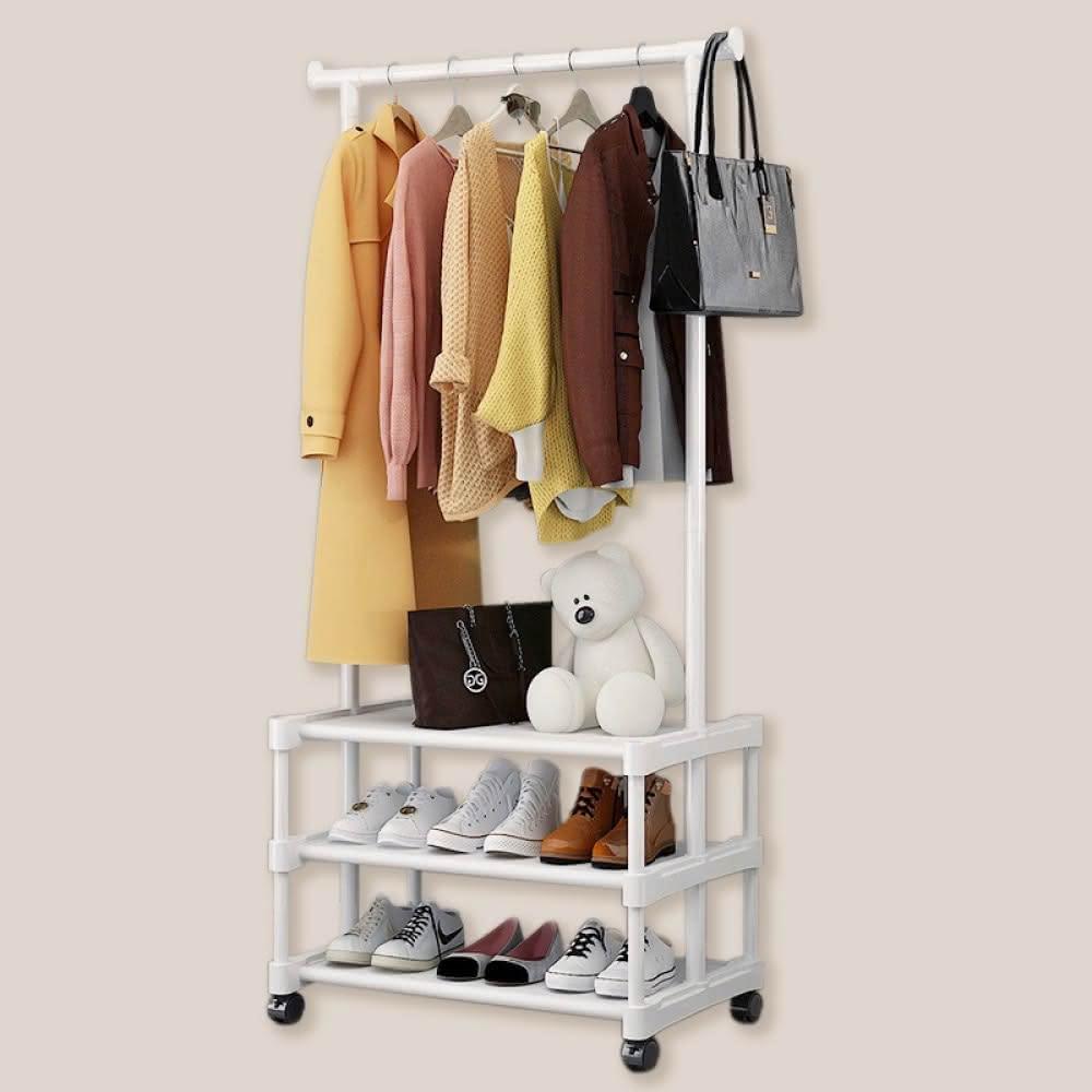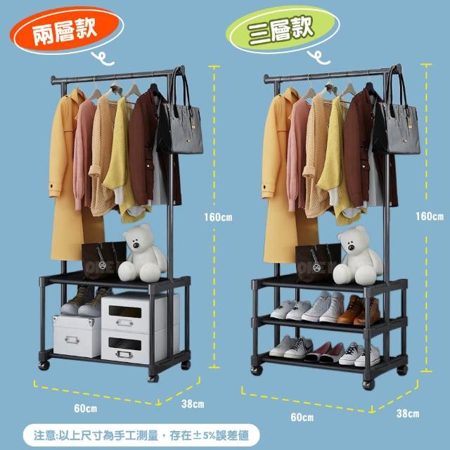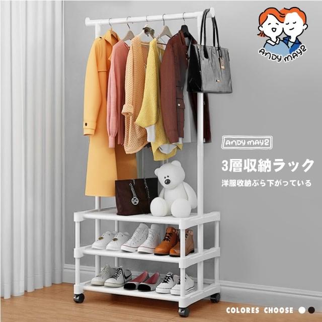 ANDYMAY2簡約多功能衣帽收納架附輪-三層(衣帽架 衣帽鞋架 衣架 置物架 收納架 吊掛架 衣掛架)