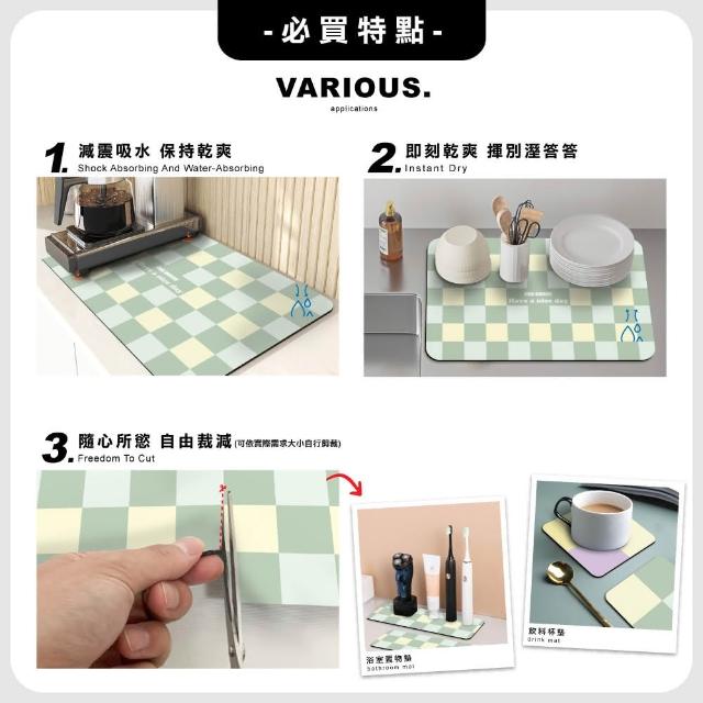 ANDYMAY2北歐原創珪藻土瀝水軟墊-大款-60x40CM(地墊 餐墊 珪藻土 腳踏墊 吸水踏墊 軟式地墊 交換禮物)
