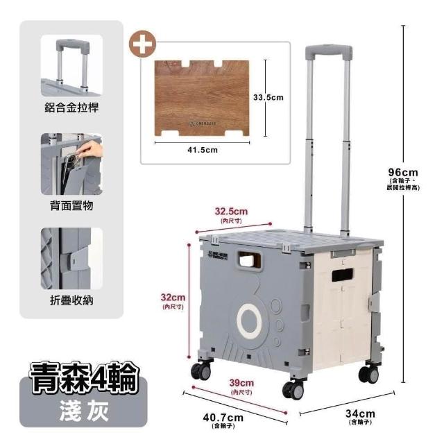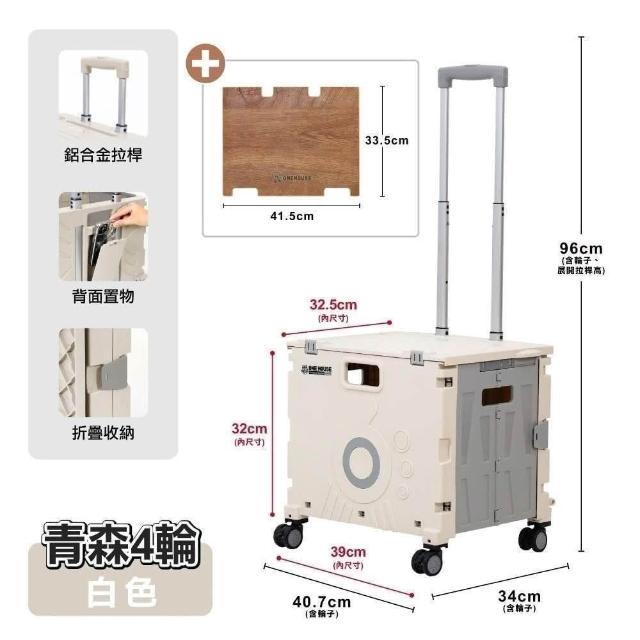 ANDYMAY2青森四輪萬向折疊收納車+桌板(1組)(買菜車 摺疊推車 購物車 摺疊手拉車 爬梯推車 收納車)