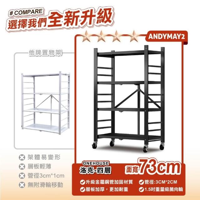 ANDYMAY2四層70寬_升級全碳鋼 洛克免組裝折疊置物架(層架 鐵架 收納櫃 收納架 折疊置物架 廚房收納 免安裝收納架 交換禮物)