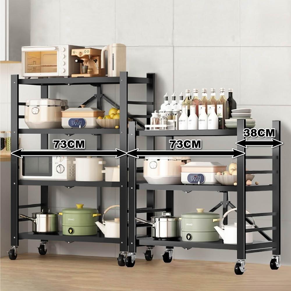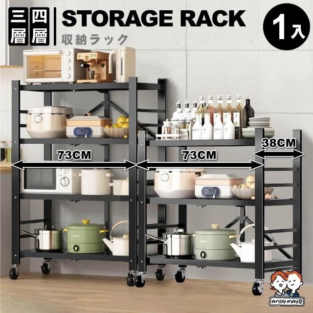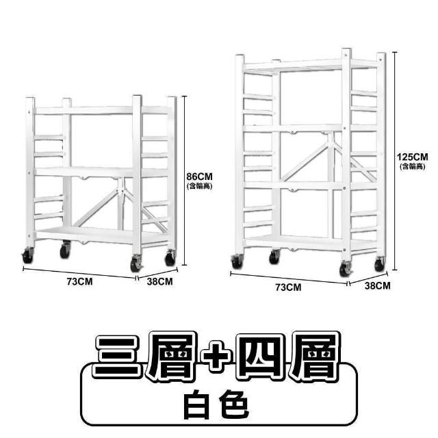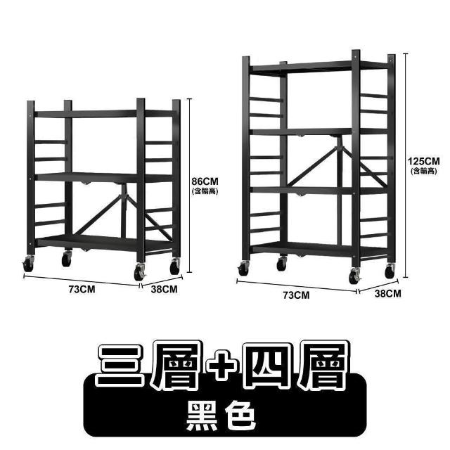 ANDYMAY270寬_升級全碳鋼 洛克免組裝折疊置物架 2件套_三層+四層(置物架 層架 鐵架 收納架 折疊置物架 廚房收納 免安裝)