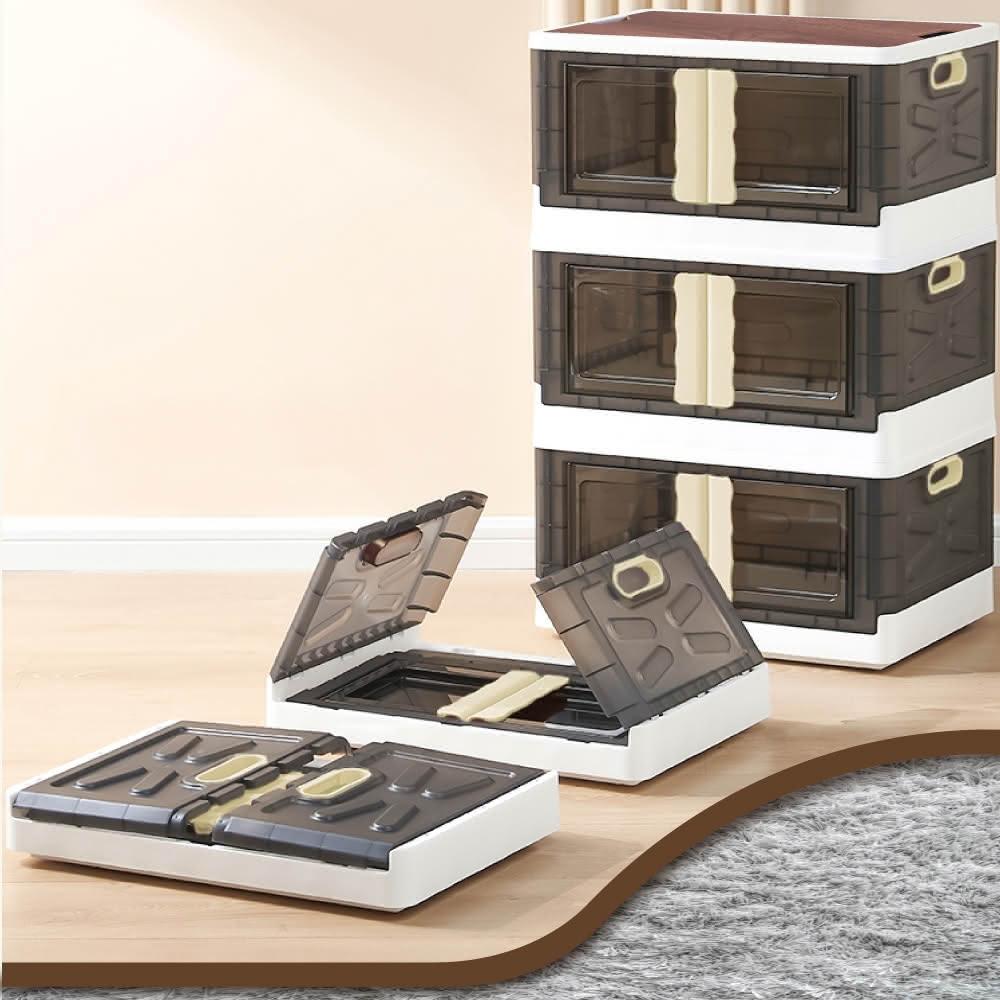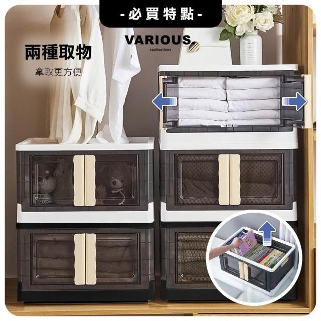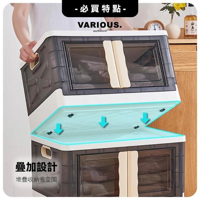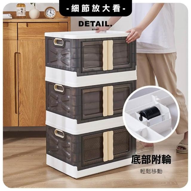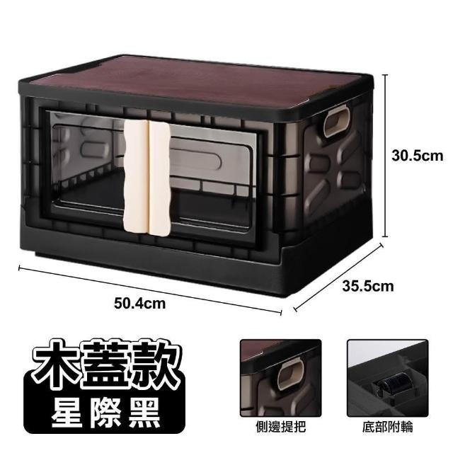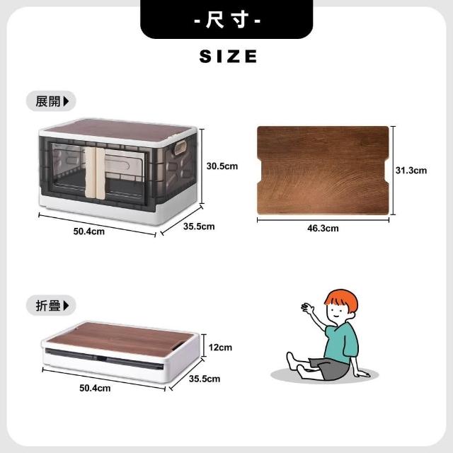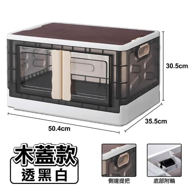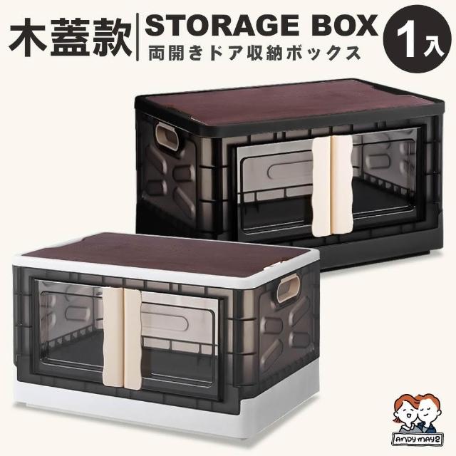 ANDYMAY242L 透黑系兩扇雙開門折疊收納箱-木蓋款(衣物收納 摺疊收納箱 收納箱 置物箱 廚房收納 交換禮物)