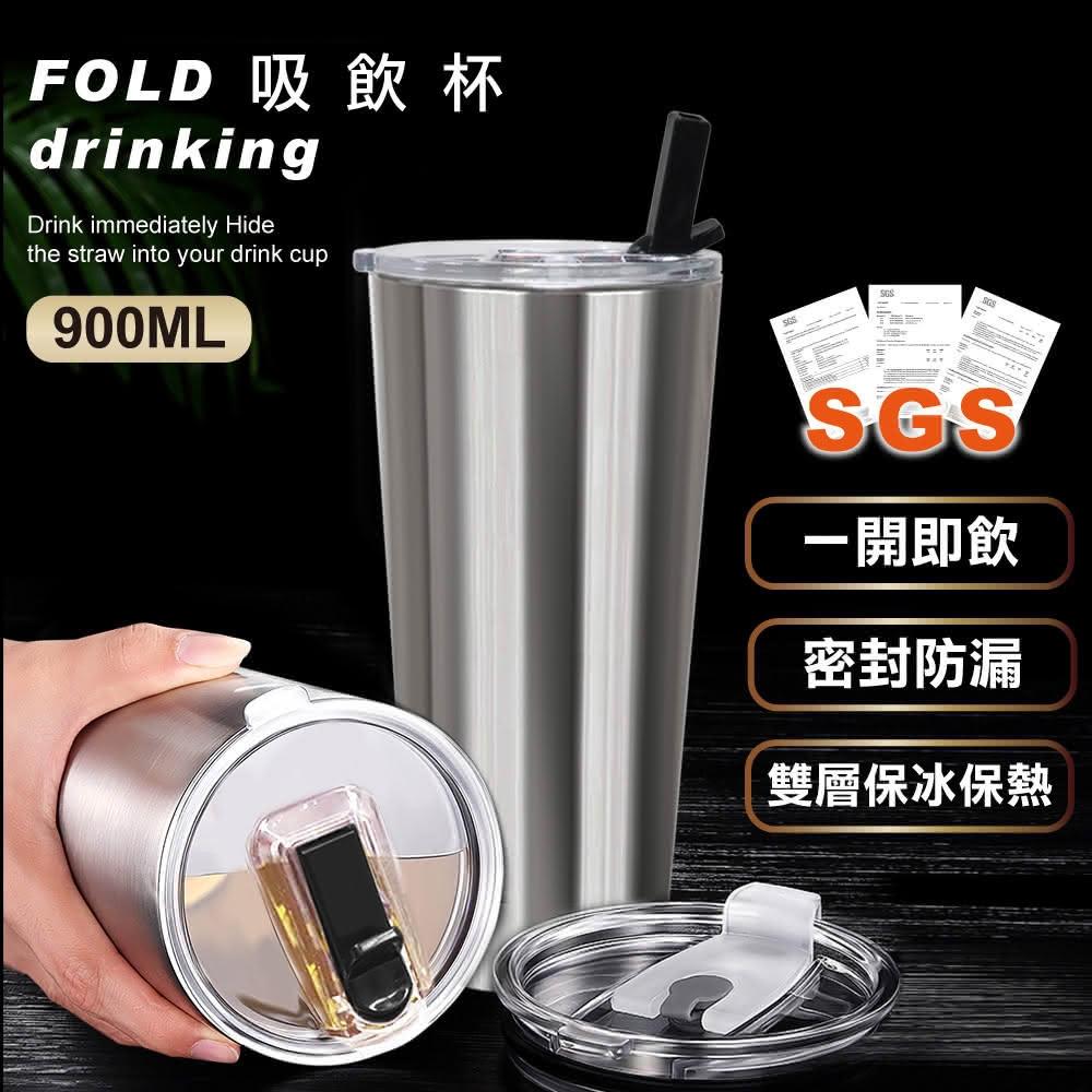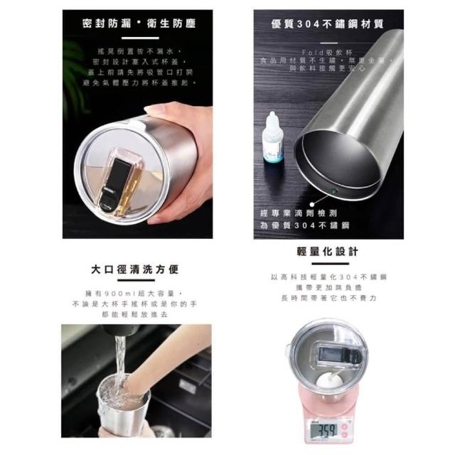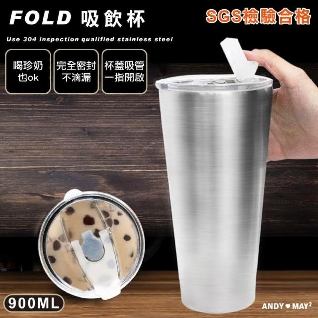 ANDYMAY2FOLD吸飲杯900ML-直飲專利蓋(酷冰杯 冰霸杯 不鏽鋼保溫杯 保冷杯 隨手杯 不鏽鋼吸管杯 直飲杯 交換禮物)