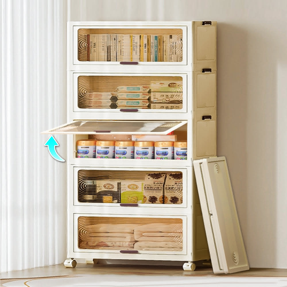 ANDYMAY285寬五層 布雷特上掀式折疊收納櫃(收納櫃 收納架 分層收納 書房收納 廚房置物架)