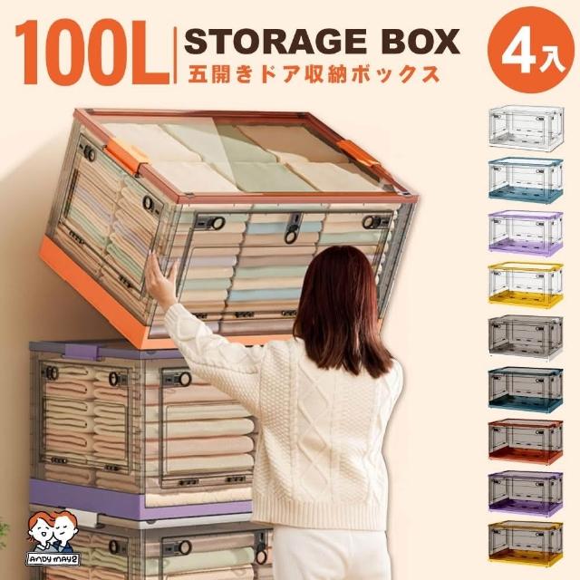 ANDYMAY2五開門大巨無霸折疊收納箱-100L(4入)(衣物收納 置物箱 收納櫃)