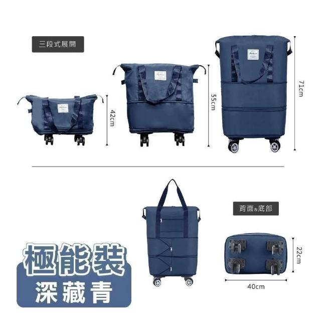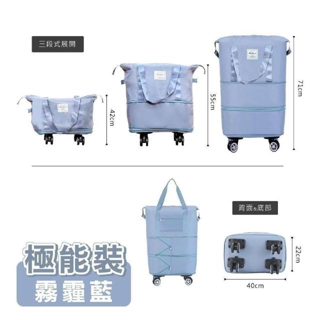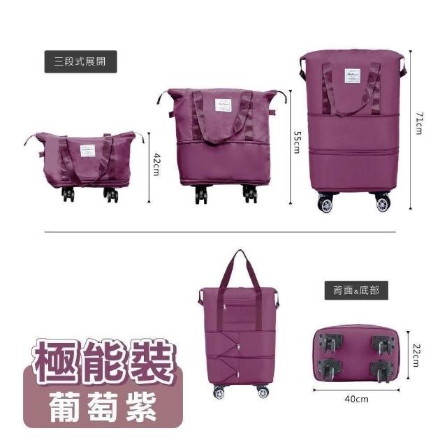 ANDYMAY2極能裝3倍擴充帶輪便攜收納車(購物收納袋 買菜車 行李袋 旅行袋 收納袋 購物袋 收納車 大胃王 交換禮物)
