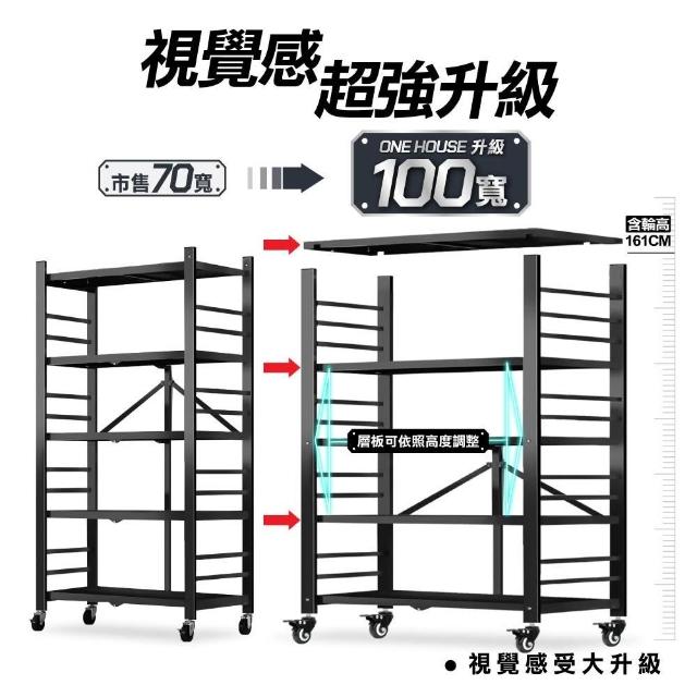 ANDYMAY2五層100寬_可調層板 洛克巨型免安裝摺疊置物架-2色可選(免組裝 收納櫃 收納架 層架 鐵架 書架 電器櫃)