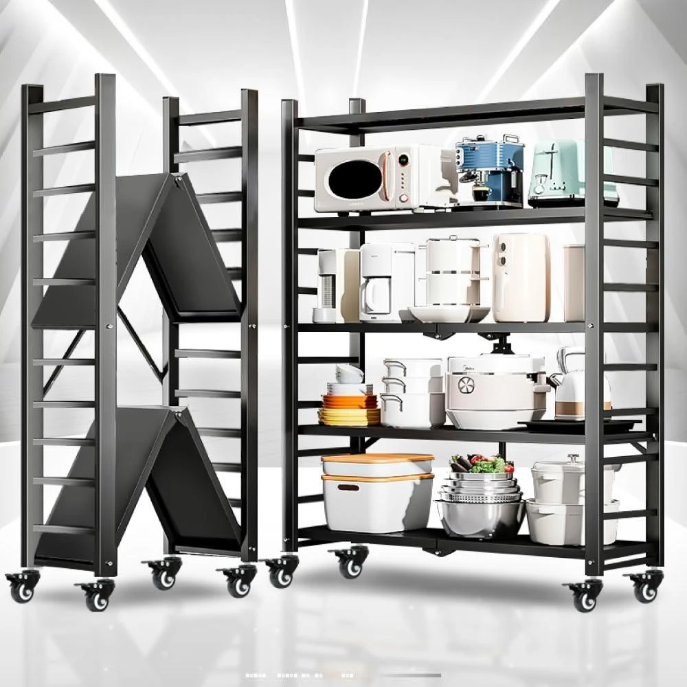 ANDYMAY2五層100寬_可調層板 洛克巨型免安裝摺疊置物架-2色可選(免組裝 收納櫃 收納架 層架 鐵架 書架 電器櫃)