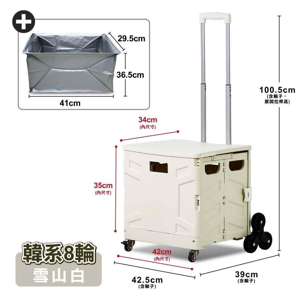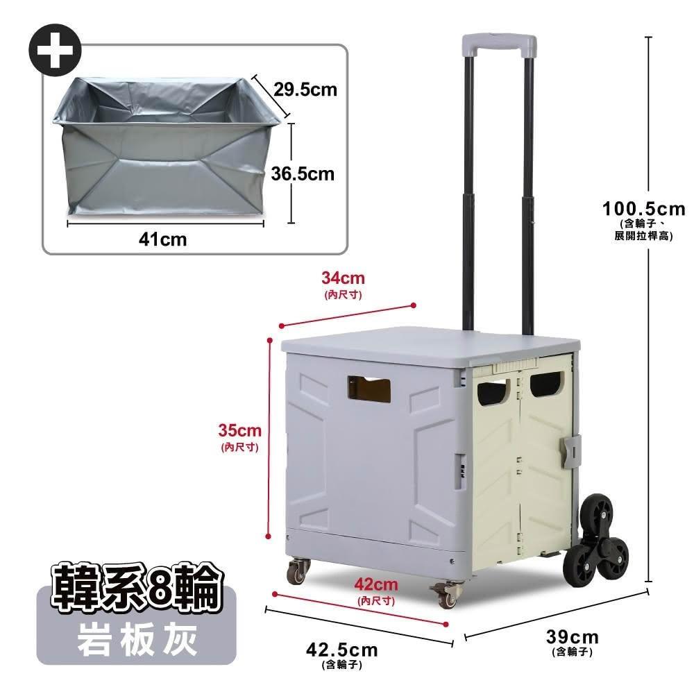 ANDYMAY2韓系8輪折疊購物車+特大防水袋(買菜車 收納推車 推車 收納架 收納箱 寵物推車 交換禮物)