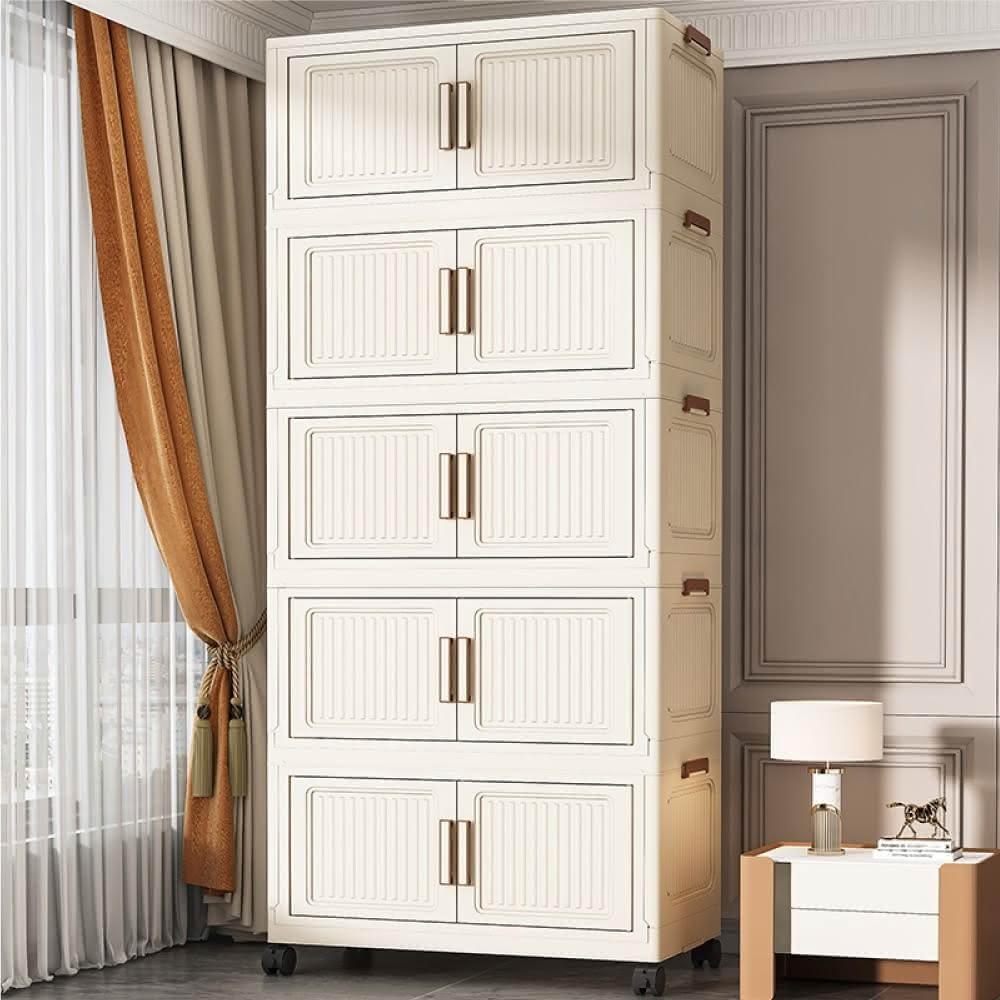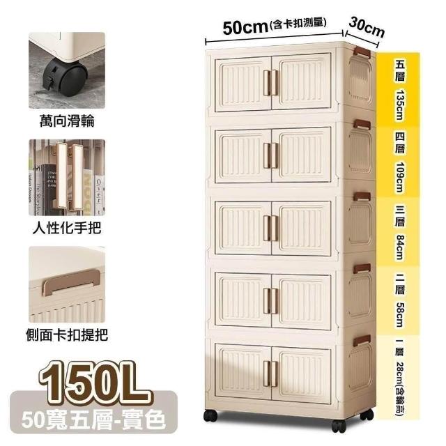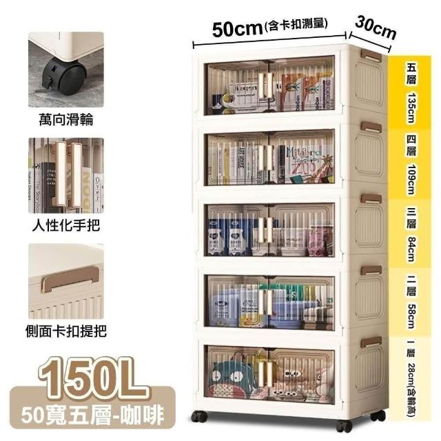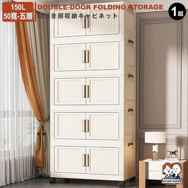 ANDYMAY250寬五層 品匠摺疊雙開門磁吸收納櫃(附滑輪)(收納箱 置物櫃 廚房收納 收納架 免安裝收納 摺疊收納 雙開門收納)