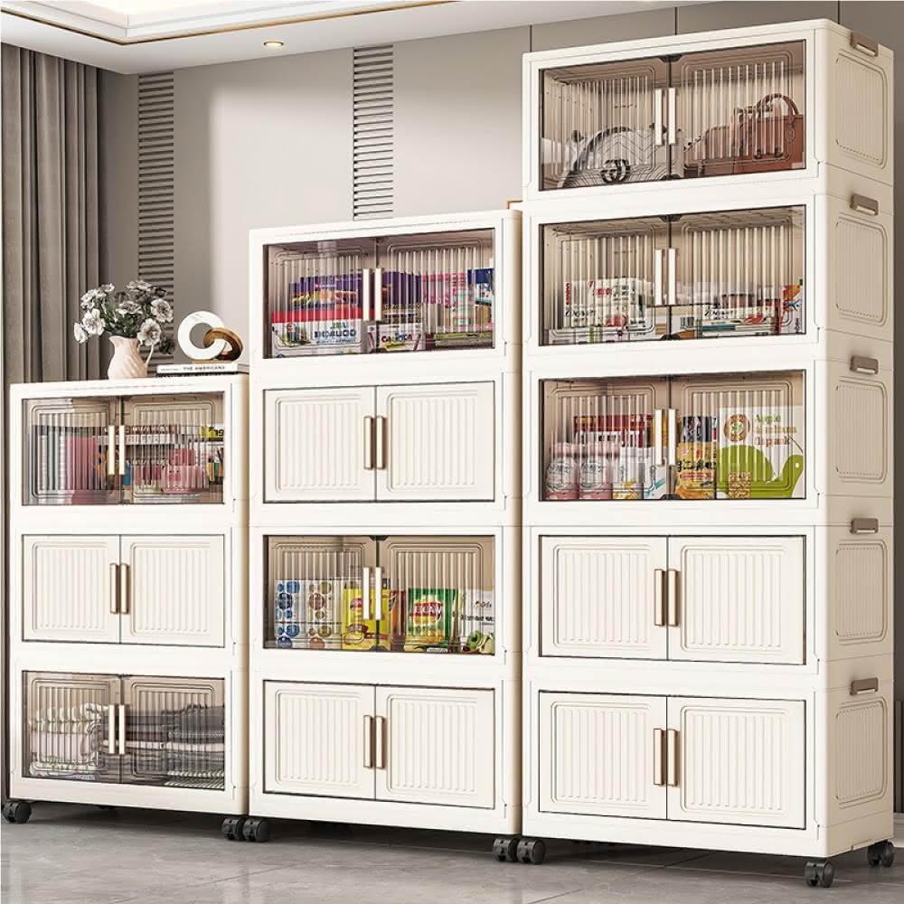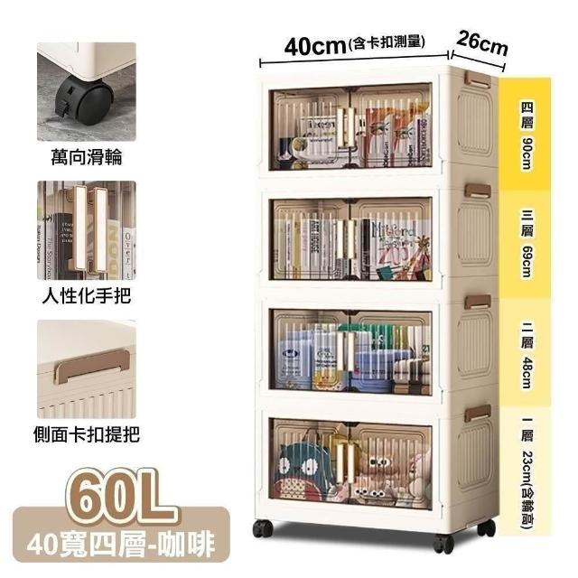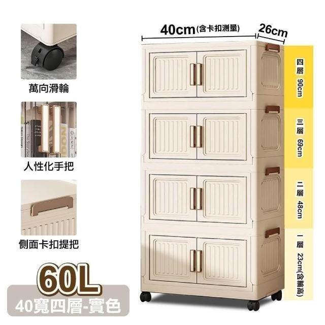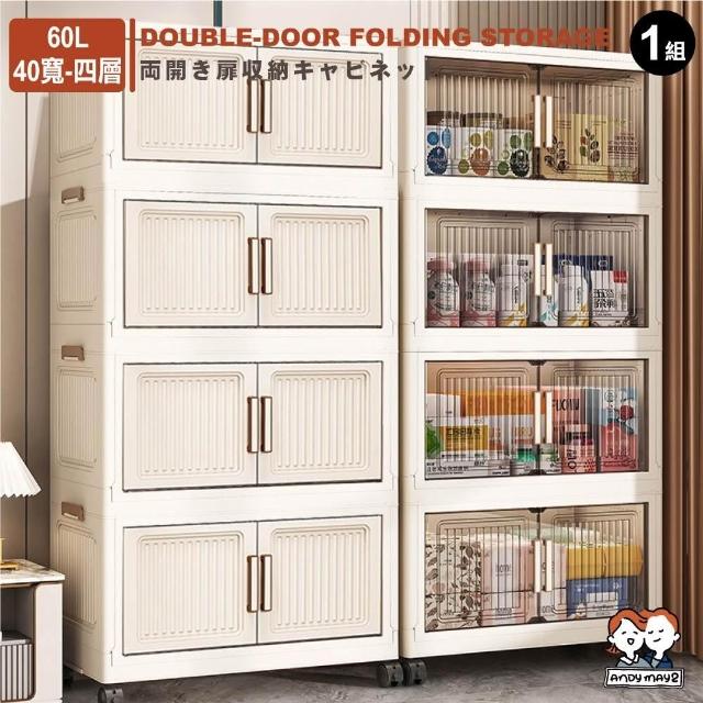 ANDYMAY240寬四層 品匠摺疊雙開門磁吸收納櫃(附滑輪)(收納櫃 收納箱 廚房收納 收納用品 收納架 折疊收納箱 收納櫃子)