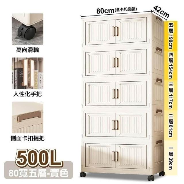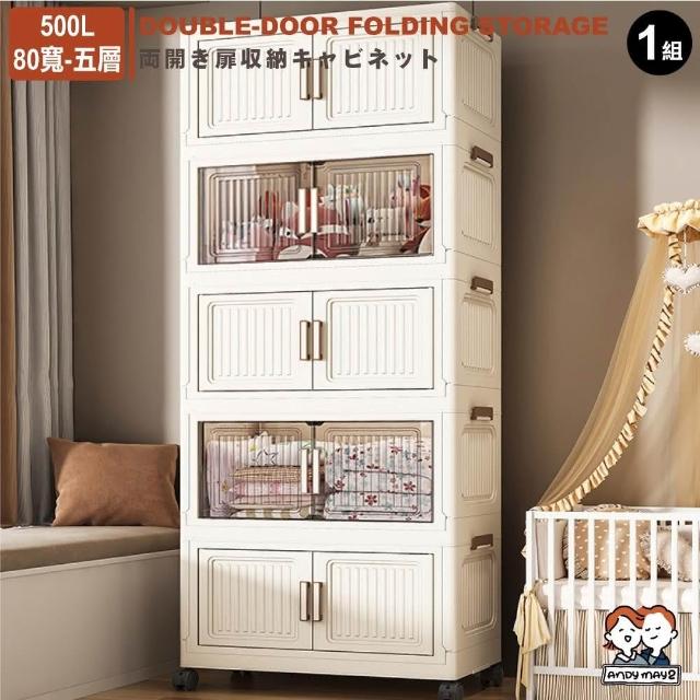 ANDYMAY280寬五層 品匠摺疊雙開門磁吸收納櫃(附滑輪)(收納箱 置物櫃 收納箱 廚房收納 收納架 免安裝收納 摺疊收納)