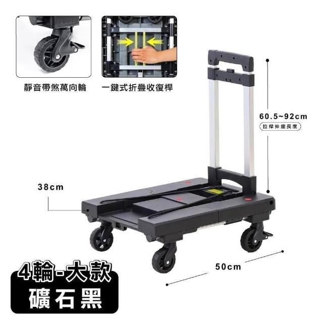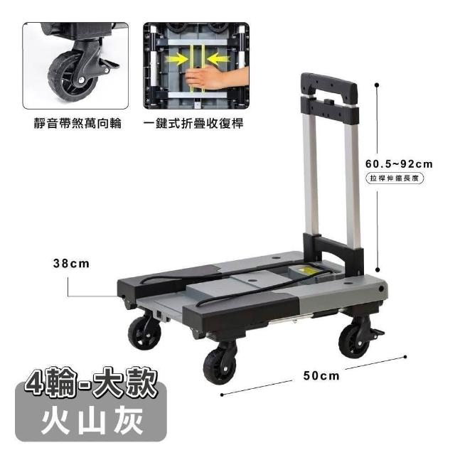 ANDYMAY2金鋼狼 一鍵式折疊輪平板推車-4輪大款(折疊推車 收納車 手推車 購物車)