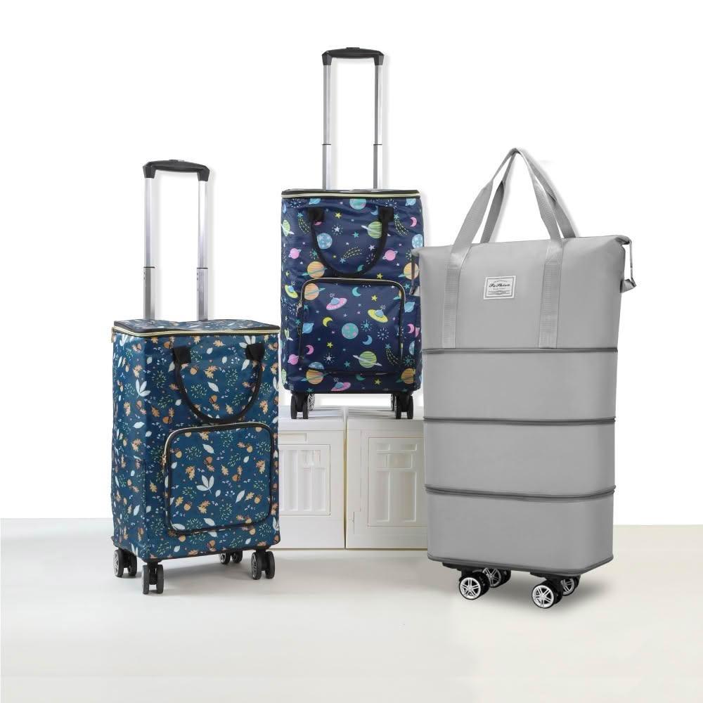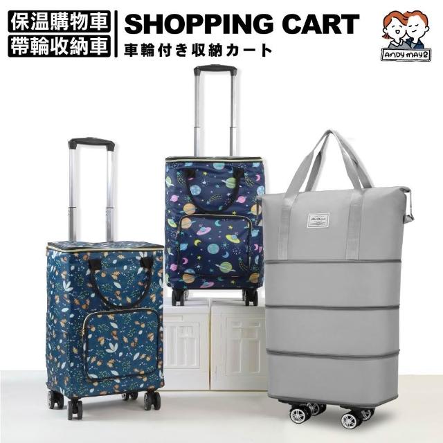 ANDYMAY2升級大容量折疊購物車/收納車-4輪-三款任選(保溫包+拉桿車/擴充旅行袋+4輪)(菜籃車 推車 旅行收納包 交換禮物)