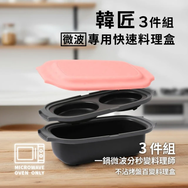 ANDYMAY2韓匠3件組 微波專用快速料理盒(微波專用 微波盒 煎魚神器 微波調理鍋 不沾鍋 煎鍋 交換禮物)