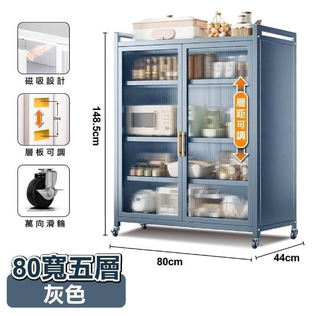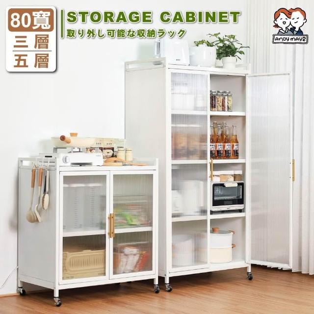 ANDYMAY2大洛克80寬磁吸雙開門廚房萬用收納櫃_三層/五層(規格任選)_80x45cm桌面(餐廚櫃 收納架 置物櫃 層架 收納櫃)
