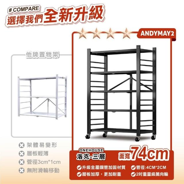 ANDYMAY2升級全碳鋼免組裝 五層 洛克折疊置物架-70寬-加固特大款(層架 鐵架 收納架)