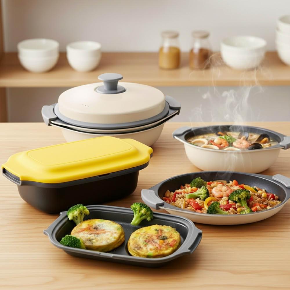 ANDYMAY2韓匠微波加熱專用料理豪華6件套 _經典盒3件+加大鍋3件(不沾鍋 調理盒 煎鍋 快速微波盒 年菜 煎魚神器 湯鍋)