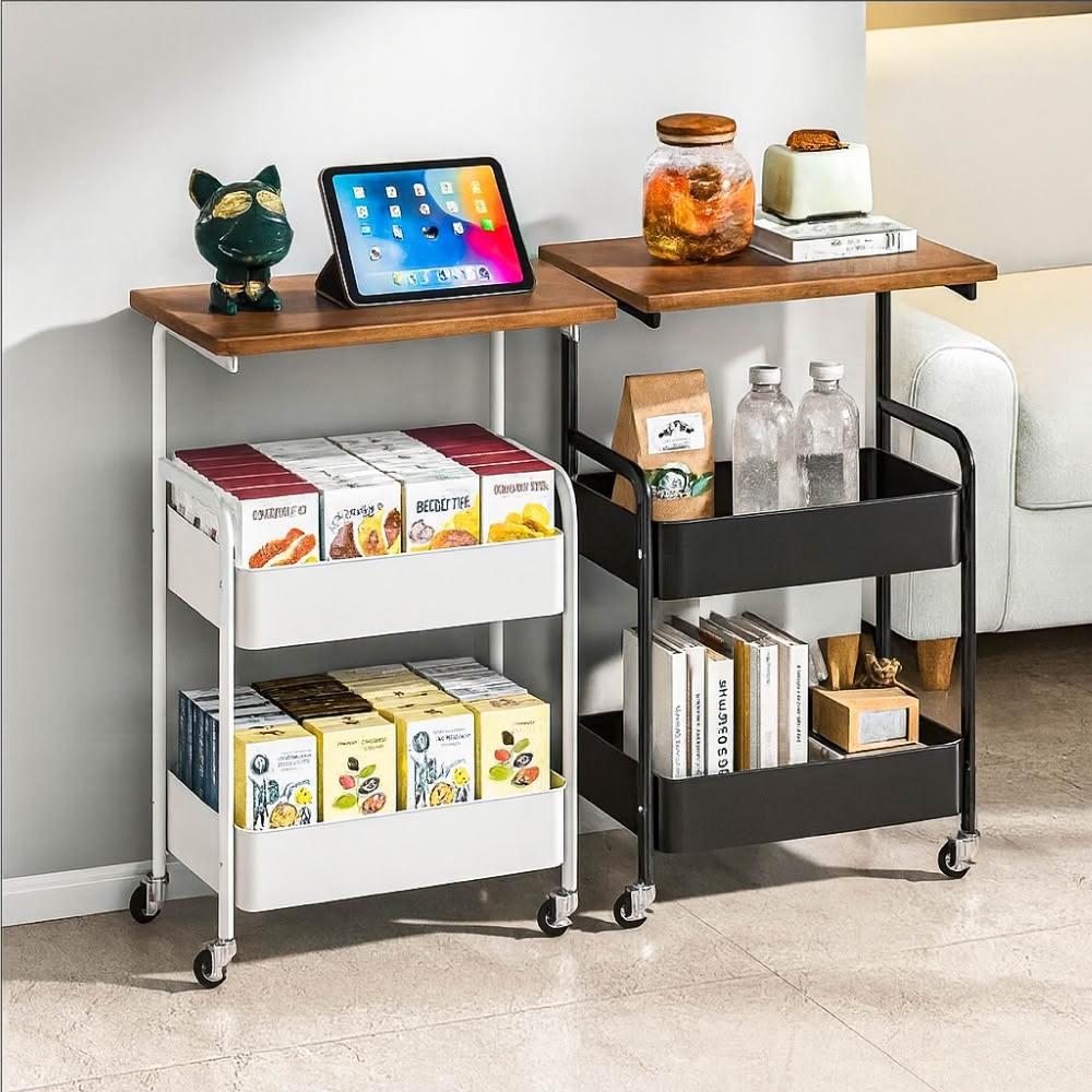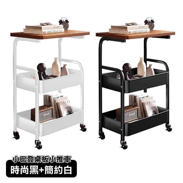 ANDYMAY2買一送一 小巴登鐵製收納架木桌板置物推車 電腦桌/三層收納 (收納架 置物櫃 桌板推車 收納籃 手推車)