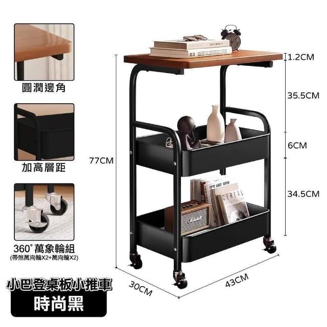 ANDYMAY2買一送一小巴登木桌板鐵製收納推車-2色任選 收納用品 置物架